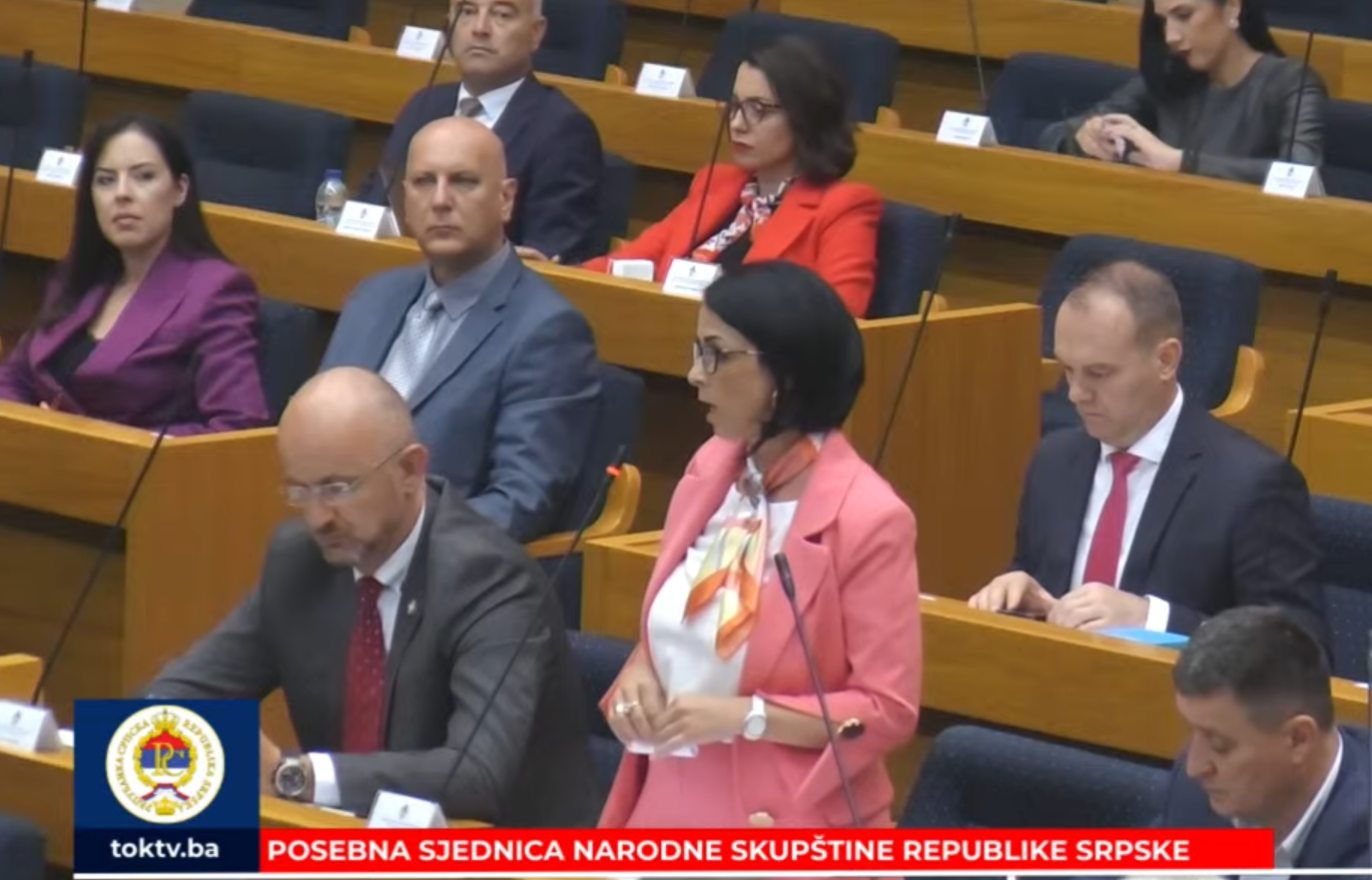 Ranka Perić Romić, članica Kluba poslanika SNSD u NSRS govorila je također u ime Kluba o oduzimanju mandata Miloradu Dodiku.