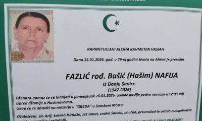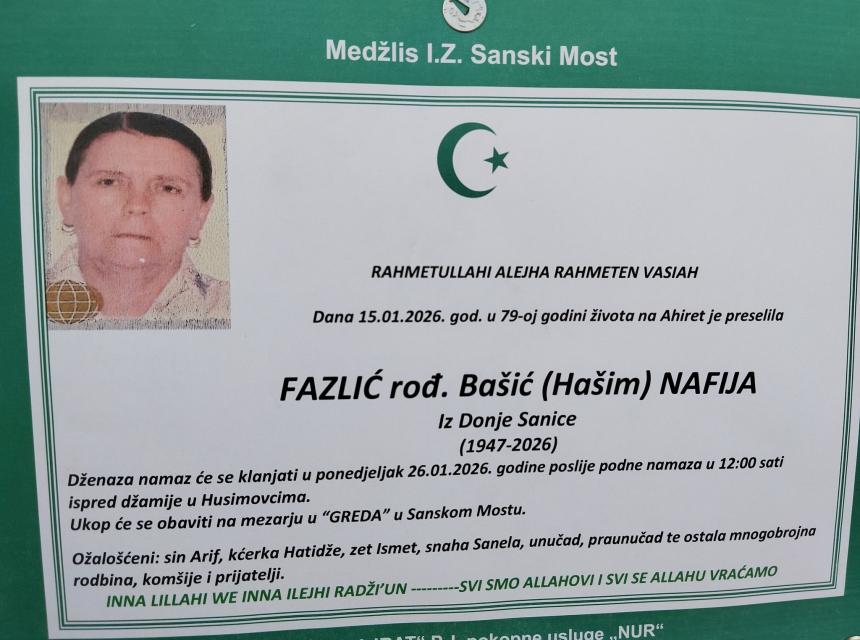 Dana 15.01.2026. god. u 79-oj godini života na Ahiret je preselila Fazlić (rođ. Bašić) Nafija iz Donje Sanice.