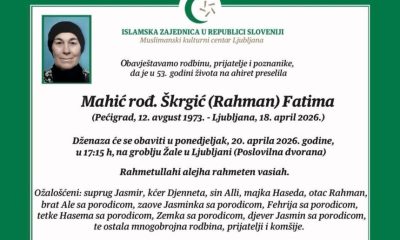 U Sloveniji na Ahiret preselila Mahić (rođ. Škrgić) Fatima