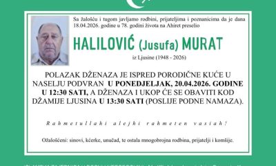 Dženaza polazi u utorak, 21.04.2026. godine u 17:00 sati (nakon ikindije-namaza) ispred porodične kuće na Vrletnici. Klanjanje dženaze i ukop merhuma obavit će se u porodičnom mezarju na Vrletnici po dolasku.