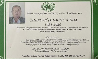 Dženaza i ukop merhuma će se obaviti u ČETVRTAK 12.03.2026. god na porodičnom mezarju ZARADOSTOVO u 14:30h.
