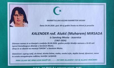 Dženaza namaz će se klanjati u nedjelju 26.04.2026. godine poslije ikindije namaza u 16:45 sati ispred Hamzibegove džamije u Sanskom Mostu.