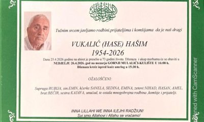 Tužnim srcem javljamo rodbini, prijateljima i komšijama da je naš dragi Hodžić (Husein) Asim – Veterinar, dana 25.04.2026. godine u 79-oj godini života, preselio na Ahiret.