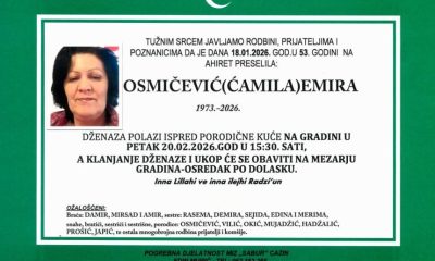 DŽENAZA POLAZI ISPRED KUĆE ŽALOSTI NA KOLIŠTU CAZIN U PETAK 20.02.2026. GOD U 14:00. SATI, KLANJANJE DŽENAZE I UKOP ĆE SE OBAVITI NA MEZARJU PAŠIN HARMAN PO DOLASKU.
